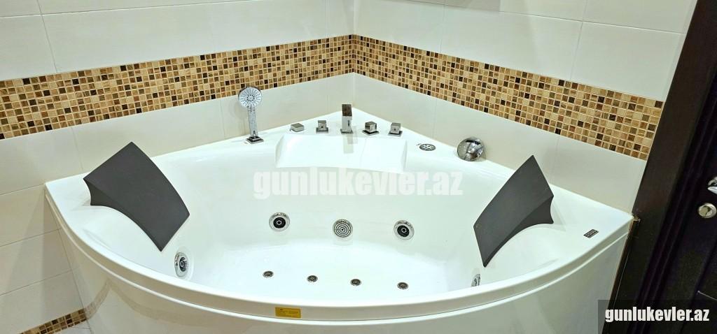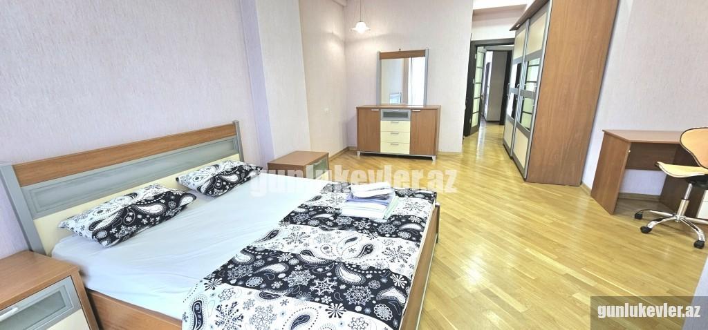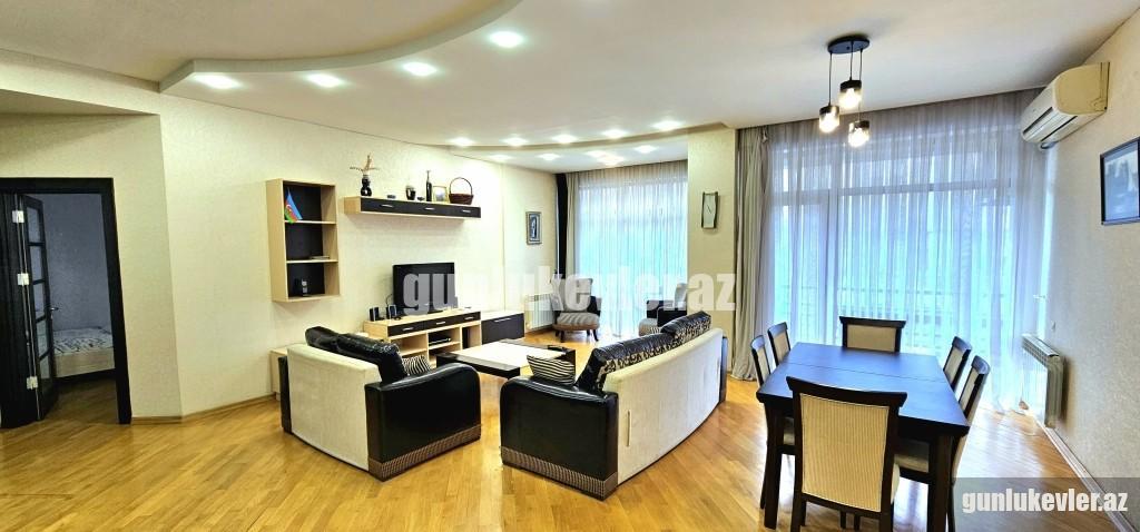 Ev 1 gecəlik və saatlıq verilmir!. Minimum 3 günlük verilir. Yeni tikilmiş binada Super temirli,muasir mebel ve texnikayla yığılmış avanqard menzili gundelik kirayeye verirem. Ev öz evimdir. 3 otaq 157 kvm sahesi var. Şekiller eve aitdir. Ev yalniz ecnebi qonaqlar ve aileliler ucun verilir. Ciddi şexsler narahat etsin! Qiymət otaq sayından asılı olaraq 50 manatdan 120 manatadək dəyişir. 1 otaq 50 manat, 2 otaq 60 manat, 3 otaq 80-100 manat, 4 otaq 120 manat. Комфортная 3 комнатная квартира с раздельными комнатами на 4/18 этажного дома в центре Баку Спальня оснащена двуспальной кроватью с ортопедическим матрасом и два односпальный кровать, зеркальным вместительным шкафом, кондиционером, В другой комнате имеется раскладывающийся диван, кабельное ТВ, Wi-Fi, кондиционер. На кухне имеется вся необходимая бытовая техника: холодильник, электрочайник, кухонные принадлежности, микроволновая печь, газовая плита. В ванной комнате: сантехника и кафель итальянского производства, фен, стиральная машина, Постельное бельё, полотенца. Рядом находятся: торговый центр, супермаркет. Квартира предназначена для комфортного пребывания четырех человек. Спальных мест 2+2+1. Зависимости от количества комнат цена меняется от 50 до 120 манат