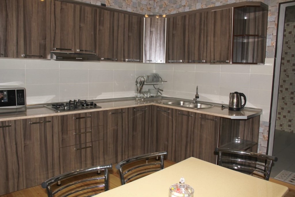 * Mətbəxdə mikrodalğalı soba, piltə, soyuducu və digər mətbəx əşyaları var.