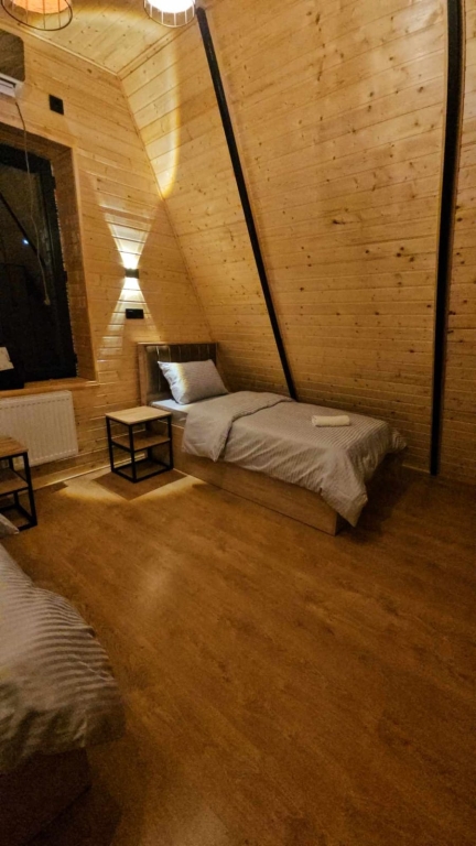 Zəng edərkən qalacağınız tarixləri və qonaq sayını mütləq qeyd edin !! Evlərə giriş saatı 14:00, çıxış saatı isə 12:00-dur. A-Frame evlərimiz Bakıdan 70 km Xızıda yerləşir. Çox təmiz havası var. Qapıya qədər asfalt yol var. Qışda sedanla da, rahat şəkildə gəlmək olar. Koteclər isti cakuzi ilə təmin olunub və cakuzi üçün xüsusi köpük və duzla təmin olunub. Yay hovuzu da mövcuddur. Hər kottecin yelləncəyi, Ocaq başı Besedkası var. Böyük kotec 5-6 nəfərlikdi, balaca kotec 2-3 nəfərlikdir. Kotteclerimiz isti pol ilə döşənib və əlavə kondisionerlər var. Bütün koteclerimizdə rahat yemək bişirmək üçün qaz sobası var, lazımlı əşyalar yer alıb. Soyuducu, Qab yuyan, Paltar yuyan, Qaz sobası, Kondisioner, İsti pol, İsti cakuzi, Tava seti, Qazan seti, Qaşıq, bıçaq ve çəngəl seti, Səhər yeməyi üçün qablar, Kəsa,boşqablar, Salat qabları var. Şərab ve viski bokalları, Hamam xalatları, dəsmallar, tərlik, Sabun, şampun, duş geli, diş fırçası, diş pastası, qulaq pambığı, salfet var. Elektrikli çaydan +çay+kofe, Samovar, Manqal seti, Odun, kömur, salyarka, kiçik daşına bilən manqal mövcuddur. Həmçinin Tv + 256 kanal, PLAY STATION + OYUN DİSKLƏRİ, Wifi, Uşaqlar üçün velosiped və samokat var. Əlavə olaraq masaüstü kart, domino, şahmat, uşaq oyuncaqları mövcuddur. QİYMƏTƏ DAXİLDİR: Pulsuz mini bar, içkilər, şokolad, cipsi, fıstıq, tum. Ləbləbi seti: gavalı, qaysı, kişmiş, badam, qoz. Evin günlük qiyməti Həftə sonu 4-5 nəfərlik kottec 200 AZN, 2-3 nəfərlik kottec 150 AZN-dir. Həftə içi 4-5 nəfərlik kottec 170 AZN, 2-3 nəfərlik kottec 130 AZN-dir. Vasitəçilik üçün xidmət haqqı 20 AZN.
