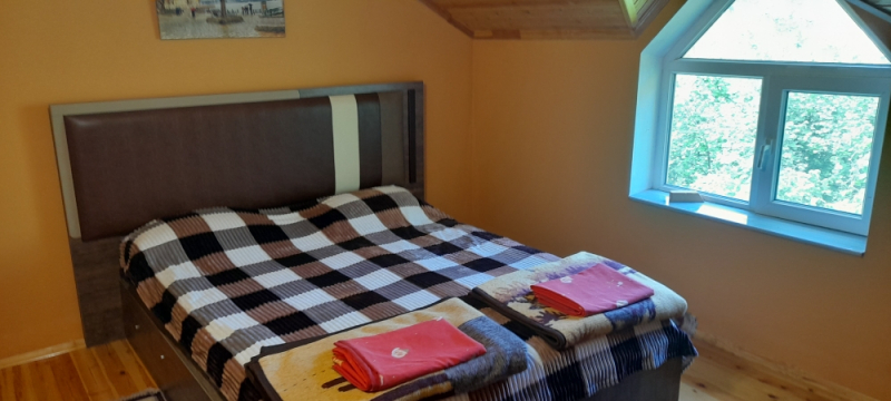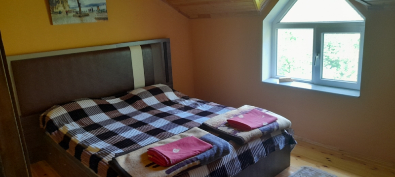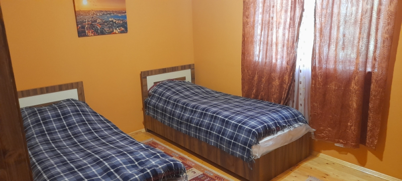 Zəng edərkən qalacağınız tarixləri və qonaq sayını mütləq qeyd edin !! Evlərə giriş saatı 14:00, çıxış saatı isə 12:00-dur. Qax rayonu Qaxbaş kəndində, dağ və meşə panoramalı 2 mərtəbə 4 otaqlı bağ evi günlük kirayə verilir. 1-ci mərtəbədə studio zal+mətbəx, 1 yataq otağı, sanuzel var. 2-ci mərtəbədə 1 yataq otağı, 1 qonaq (oturmaq) otağı və eyvan var. 6-8 nəfərin rahat istirahəti üçün evdə şərait var. 2-ci mərtəbədən çox gözəl mənzərəsi var. Həyətində meyvə ağacları, manqalı, samovarı, besedkası var. Günlük qiyməti 100 AZN. Vasitəçilk üçün Xidmət haqqı 20 AZN.