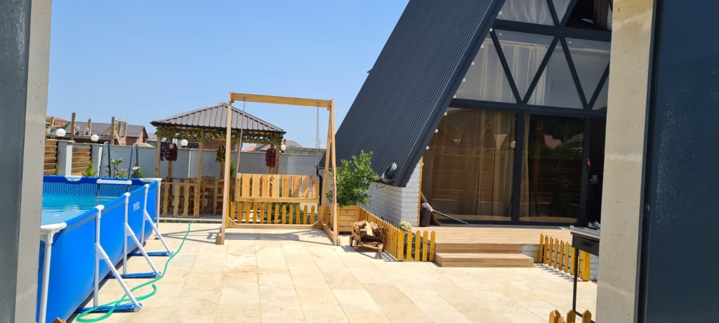 Zəng edərkən qalacağınız tarixləri və qonaq sayını mütləq qeyd edin !! Evlərə giriş saatı 14:00, çıxış saatı isə 12:00-dur. Qusar rayonu çay tərəfdə, Xıdır restoranına yaxın 2 mərtəbəli 4 otaqlı quraşdırma Hovuzlu A-Frame ev günlük kirayə verilir. Ev 1 qonaq, 3 yataq otağından ibarətdir. Evdə 7-8 nəfər qala bilər. Tv, internet, qaz, su, işıq, kombi var. Samovar, manqal, quraşdırma hovuz mövcuddur. Evin günlük qiyməti 230 AZN. Vasitəçilik üçün xidmət haqqı 20 AZN.